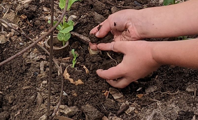 7. Gently crush the eggshell so the roots will be able to expand and then place it directly into the earth. The shell will eventually biodegrade, adding nutrients to the soil.